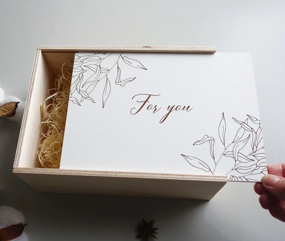 После вручения она найдёт своё место в интерьере и прослужит долгое время: в ней удобно хранить украшения, часы, флаконы с парфюмом, аксессуары, канцелярию или мелкие сувениры. Благодаря натуральному дереву и аккуратному исполнению, такая упаковка подчёркивает внимание к деталям и добавляет торжественности любому поводу — будь то день рождения, юбилей, свадьба или Новый год.