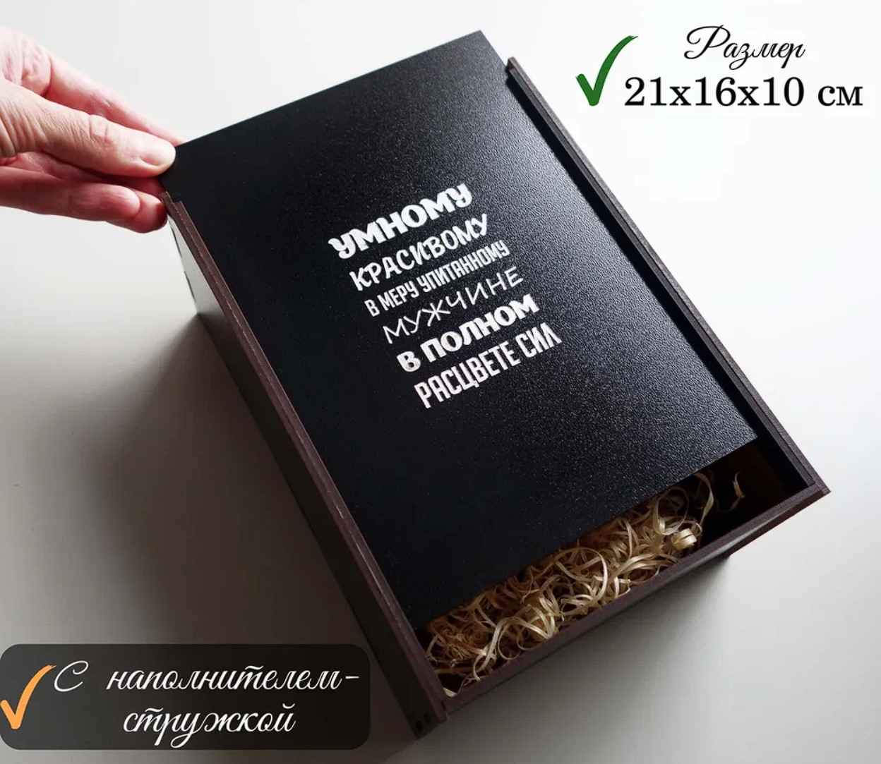После вручения она найдёт своё место в интерьере и прослужит долгое время: в ней удобно хранить украшения, часы, флаконы с парфюмом, аксессуары, канцелярию или мелкие сувениры. Благодаря натуральному дереву и аккуратному исполнению, такая упаковка подчёркивает внимание к деталям и добавляет торжественности любому поводу — будь то день рождения, юбилей, свадьба или Новый год.